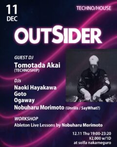 東京アンダーグラウンドの芯を突くテクノ/ハウスパーティー”OUTSIDER”