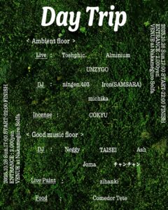 10月26日、日曜日に第3回目となるListening music Party、『Day Trip』を開催します。