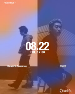 今回はシングル“TOXIC LOVE”を先月リリースし、ソウルフルな歌声と緻密なプロダクションで注目を集めているKouichi Arakawa。そして、IOの武道館公演『JUST SHOW』のアフターパーティへの出演で話題を呼び、さらにシングル“MOSES”を発表したばかりの新鋭・SWEEがライブアクトとして登場。DJにはR&Bを中心に東京の音楽シーンで存在感を放つDaBookらがラインナップ。