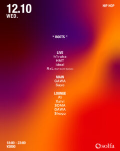ROOTSは、HIPHOPのカルチャーが生まれた本質=ストリートの声・リアルな表現を大切にしながら、現代のアーティストや新しいスタイルを融合させるイベント。DJ、ライブを通してHIPHOPの“根っこ”を感じられる空間を作る。