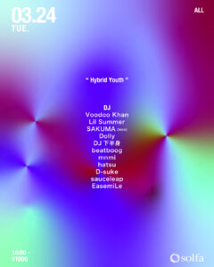 Room2は、よりfreshでpureなDJを選んだ。普段ミニマルなライブセットを披露するRyotaro Oka、うどん、YUTOIBAそしてmuni_にラウンジフロアの選曲をお願いした。水々しく新鮮な彼らが織りなすラウンジフロアの雰囲気が中目黒に春の訪れを告げる。